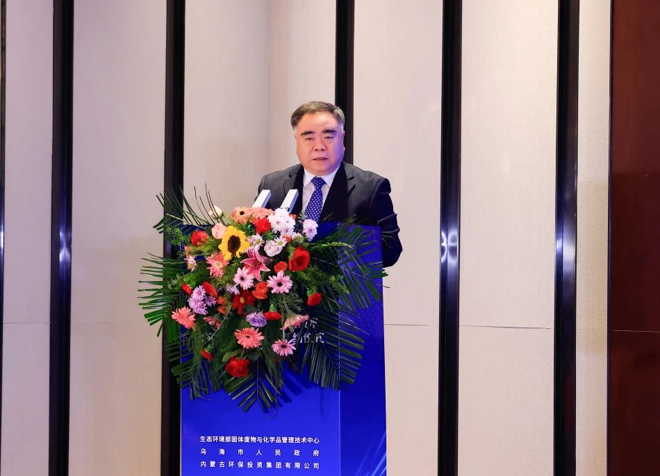 生态环境部固管中心副主任胡华龙致辞,他表示,生态环境部固管中心将认真落实协议内容,全方位与乌海市人民政府和米兰平台开展合作,搭建资源共享和技术交流平台,推动科技成果的转化应用,为解决工业固体废物问题提供强有力的技术支持。