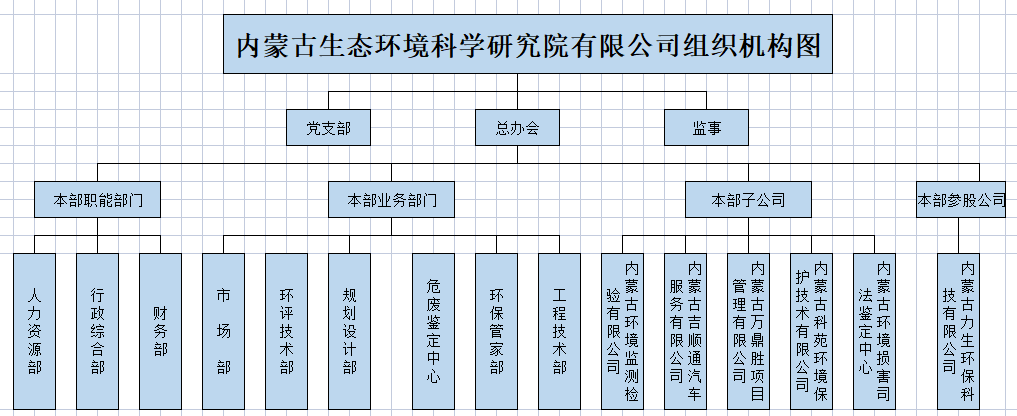 内蒙古生态环境科学研究院有限公司是内蒙古环保投资集团有限公司的全资子公司,成立于2001年,注册资本金5000万元。公司长期致力于环境服务和环境资源的可持续发展,是内蒙古自治区生态环境保护服务领域的龙头企业。公司作为引领全区的创新型环保企业,公司团队包含环境规划、环境影响评价、流域综合治理、环境监理、环境工程、环保管家、环保技术研发、环境损害鉴定、环境监测等领域众多专家级人才。
